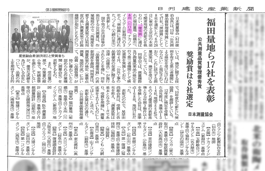 | 2013年6月28日 | 公共測量品質管理優秀賞受賞 |